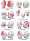 Les céphalées se situent soit derrière la tête, soit au niveau des tempes, de l’œil, ou de l’ensemble du crâne. Elles s’accompagnent quelques fois de vertiges et de douleurs au cou (cervicalgie).